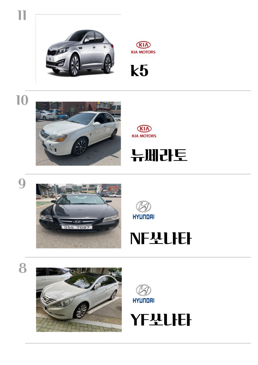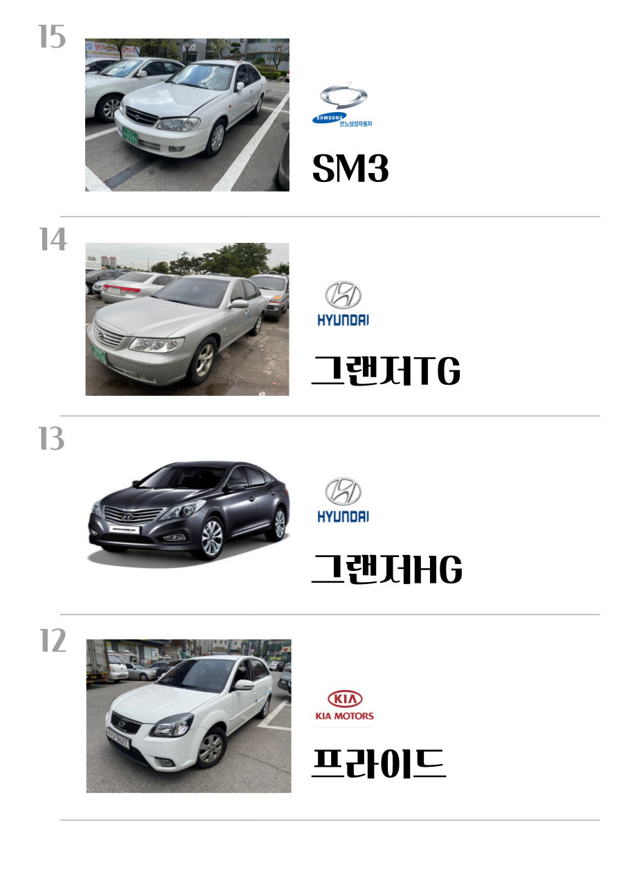 드디어! 중고차수출 시세 상위권 차량들입니다.